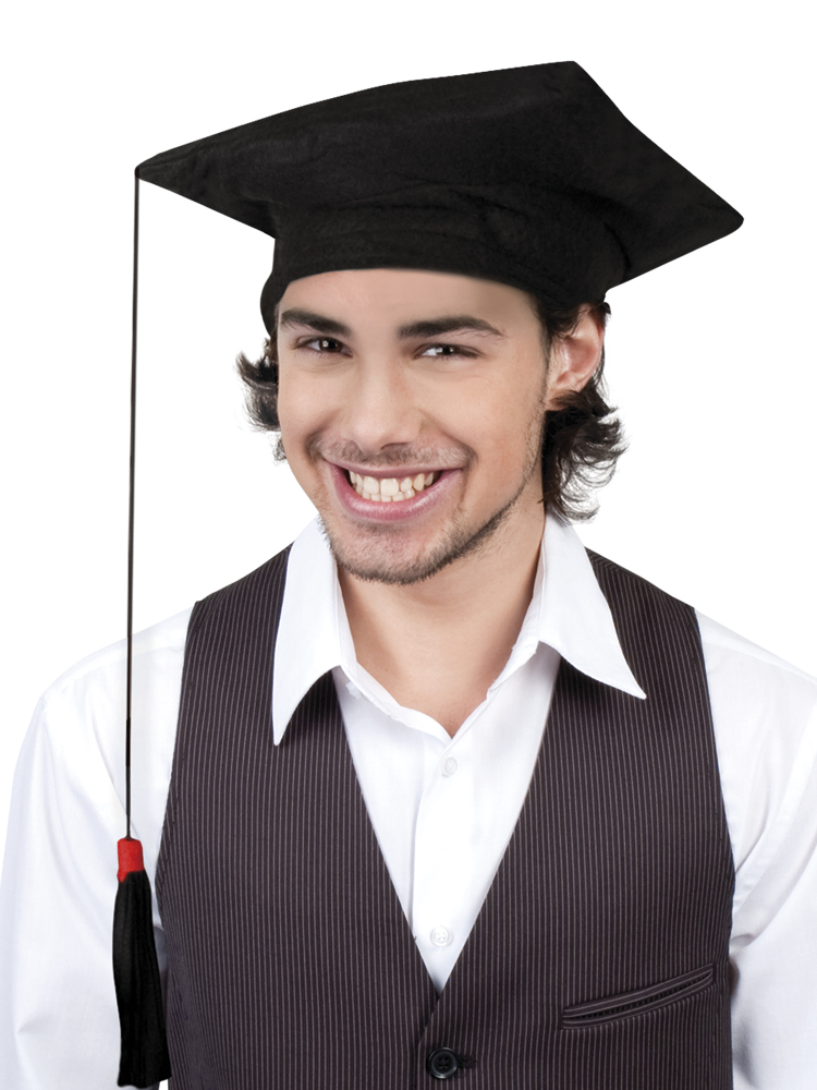 De bekende professor hoed of afstudeerhoed. Gemaakt van stof en met een kwastje aan de zijkant! One size. Super leuk als er iemand is geslaagd.