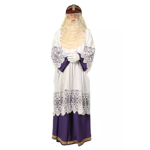 Deze albe is weer anders dan de gewone. Het witte gedeelte met de kanten onderkant is wat korter dan de gewone soorten die tot aan de grond gaan. Het onderste stuk wordt dan bedekt door een paarse onderrok. Men ziet dus het paarse gedeelte onder de witte albe uitkomen. De paarse onderrok is echter geen echte rok, maar een zeer wijde broekrok, zodat St. Nicolaas met dit gewaad aan makkelijk kan klauteren op hoge trappen, motorfiets o.i.d. kan rijden en vooral, en dat is belangrijk, makkelijk te paard kan gaan. Zeer fraai en erg praktisch. Alles gewoon wasbaar. Lijkt sterk op de onderkleding van de echte TV Sint.