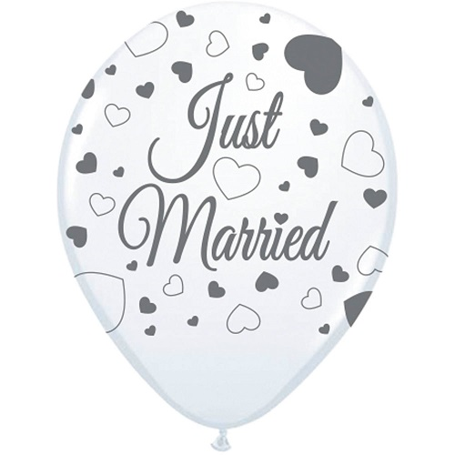 Een zakje met 8 bruiloft ballonnen van 30cm groot. Geschikt om met helium op te blazen. Wit met een lichtgrijze print.