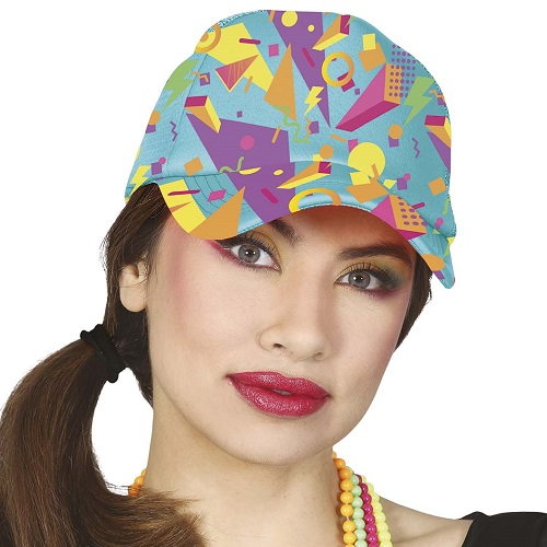 Toffe jaren 80 basaball cap met een blauw 80ties printje. Super leuk accessoir voor bij je 80ties outfit.De pet is one size, maar wel verstelbaar.