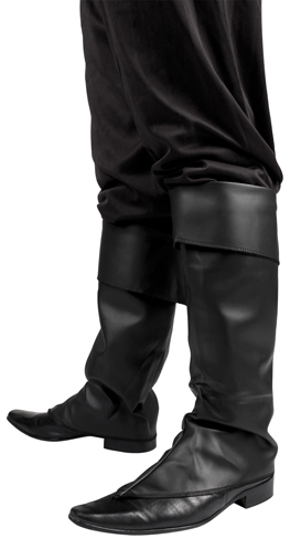 Twee zwarte hoge beenkappen waarmee het lijkt alsof je hoge zwarte laarzen aan hebt. Goed voor bij een piratenpak, bij je zorro cape of als musketier.