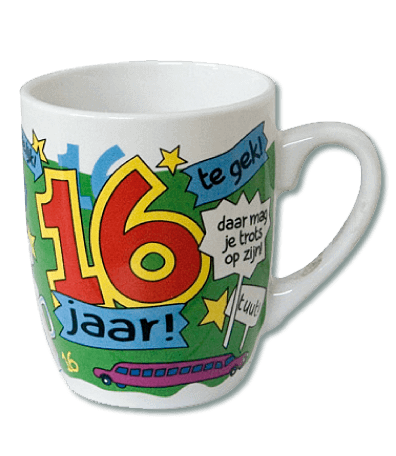 Grote mok met leuke en grappige cartoon opdruk. Heerlijke beker om ‘s ochtends een beker melk uit te drinken en ‘s avonds een kop thee uit te drinken. Tevens is deze beker een ontzettend leuk cadeau voor de jarige.