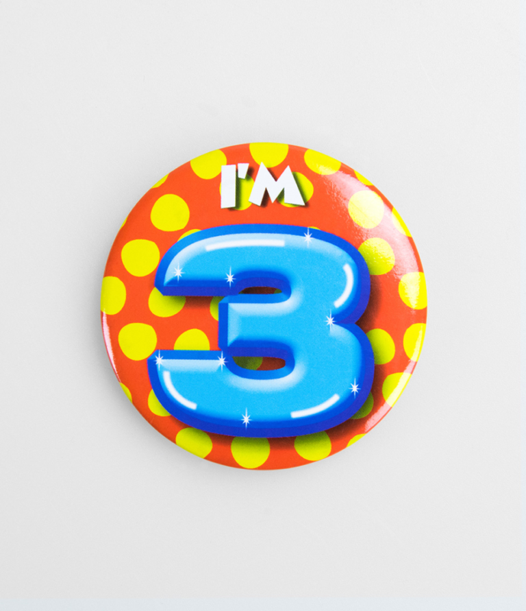 Button 3 jaar; Leuk om de jarige mee te verrassen.