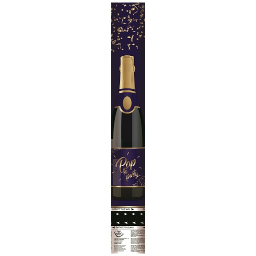 Leuke confetti en serpentine shooter speciaal voor oud en nieuw. Uit deze 40cm lange confetti popper komen gouden slierten en blauwe steretjes confetti. Schietafstand 8m. Let the party begin!