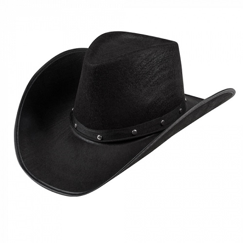 Mooie zwarte cowboyhoed met een zwart bandje. Te gek voor elk cowboyfeest.
