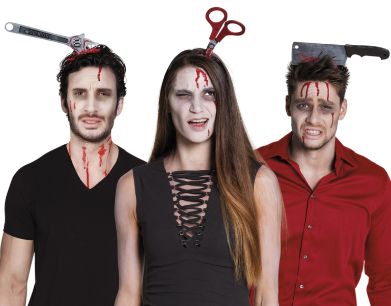 Horror diadeem, diadeem met schaar, diadeem met bijl, diadeem met moersleutel.