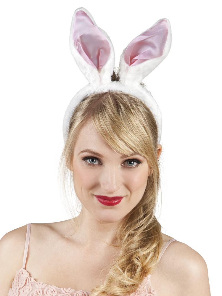 Schattige pluche diadeem met wit/roze bunny of konijnen oren. Leuk voor pasen, maar ook voor een playboy feestje.