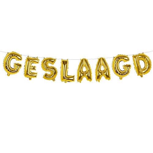 Leuke slinger met gouden letter ballonnen in de tekst geslaagd. De folieballonnen zijn elk 36cm groot en de slinger is 4m lang. Op te blazen door middel van het bijgeleverde rietje.
