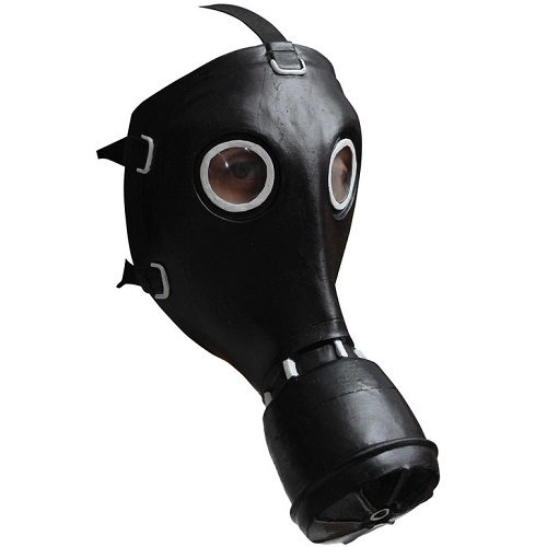 Tof latex gasmasker van het merk Ghoulish uit Mexico. Dit gasmasker bedekt alleen de voorkant van je gezicht en is om te doen door middel van 3 stevige brede elastieken.
