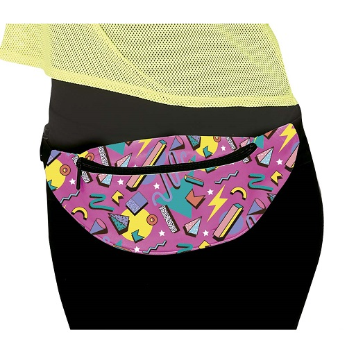 Te gek 80ties heuptasje of buiktasje om te doen door middel van een verstelbare riem met clip systeem. Aan de voorkant van het tasje zit een ritsje. Leuk accessoir bij je jaren 80outfit of trainingspak.