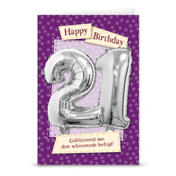 Ansichtkaart met leeftijd folieballonnen 21 jaar. De ballon is 30cm