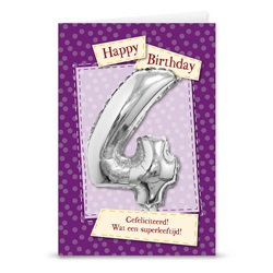 Ansichtkaart met leeftijd folieballonnen 4 jaar. De ballon is 30cm