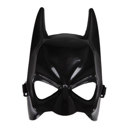 Plastic zwart masker van Batman. One size, maar zowel geschikt voor kinderen als voor volwassenen.