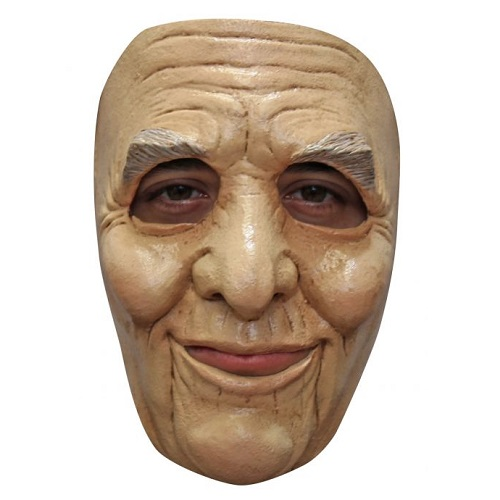 Vrolijk masker van een oud mannetje. Het masker bedekt alleen de voorkant van het gezicht en is om te doen door middel van een stevig elastiek. Leuk masker om te gebruiken voor een Abraham pop.