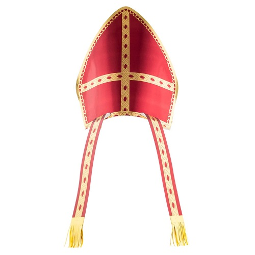 Kartonnen mijter die goed gebruikt kan worden als decoratie of als je als grap als Sinterklaas verkleedt wilt.