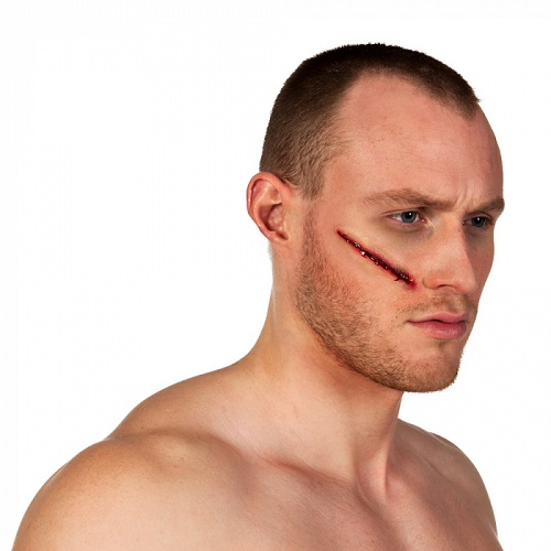 Mooie latex nepwond die je op elke gewenste plek van je lichaam kunt plakken. Let er alleen wel op dat je hem niet plakt op een plek waar je huid veel in beweging is. Dit omdat hij anders te snel loslaat en dat is zonde. Er zit een pakje met dubbelzijdige stickertjes bij de wond geleverd zodat je hem op kunt plakken. Wij raden echter wel aan om hem te plakken met huidlijm zodat hij lang en setvig blijft zitten. Werk de wond af met latex en wat bloed en je hebt een geweldige Halloween look.