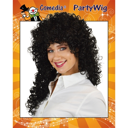 Mooie volle gekrulde pruik met een goede elastieken hoofdkap. Deze zwarte pruik met krullen is te gek voor een 80ties feestje omdat het haar zo’n fout jaren 80 permanentje heeft. Ook wordt hij veel gebruikt als Pietenpruik.