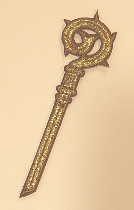 Dit is een leuk accessoire om bijv. uw kostuum of stola mee op te leuken. Kan ook gebruikt worden voor een boek of andere dingen. Gemaakt van goudstiksel dat je dus kunt vastzetten met naald een draad, kunt vastplakken of zelfs gewoon kan opstrijken met een ware strijkbout.