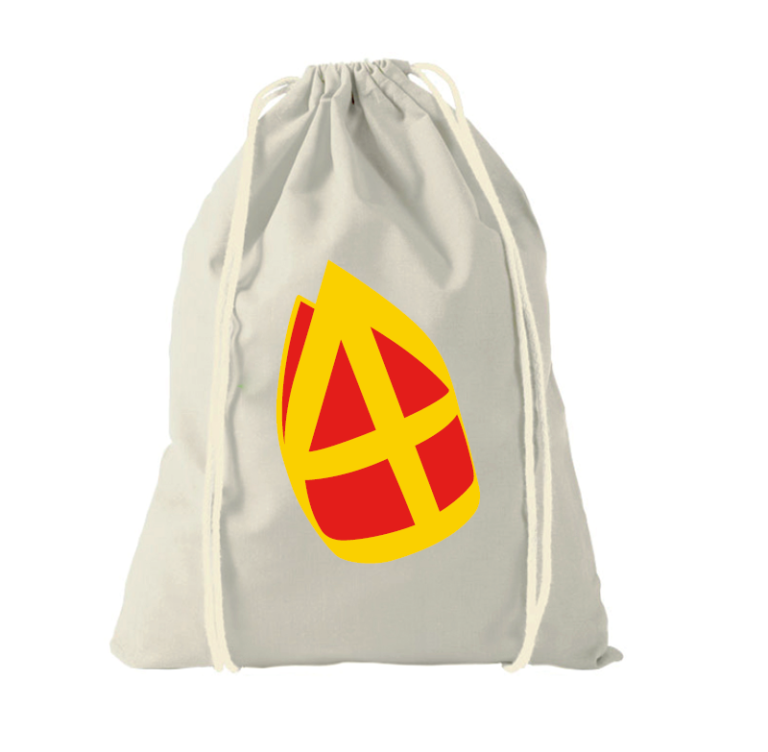 Mooie ecru kleurige pieten strooizak met koord om de zak af te sluiten en ook nog eens om de zak makkelijk om de schouder te dragen of gewoon zelfs als een rugzak. De tas is goed schoon te maken en heeft maar liefst een formaat in de breedte van 35 cm. en in de hoogte van 50 cm. Maar het allerleukste is nog dat de strooizak bedrukt is met een leuke mijter van de huidige Sinterklaas. Hoe mooi kan het zijn? We zouden zeggen: ga maar lekker snoepgoed strooien Piet!