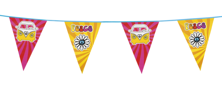 Plastic slinger met leuke vrolijke Peace opdruk. Ook geweldig is het plaatje van het volkwagen busje. Echt jaren 60! 6 meter lang.
