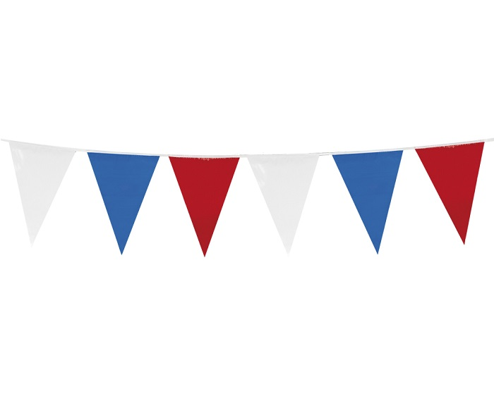 Onze Nationale driekleur, de Nederlandse vlag in een slinger. Repeterend in rood, wit, en blauw. 10 mtr lang. Regenvast