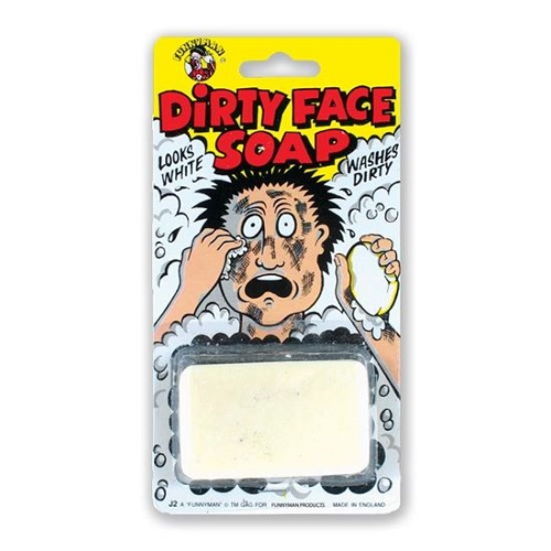 Wit stuk zeep, maar als met deze zeep je handen wast worden ze vies in plaats van schoon!